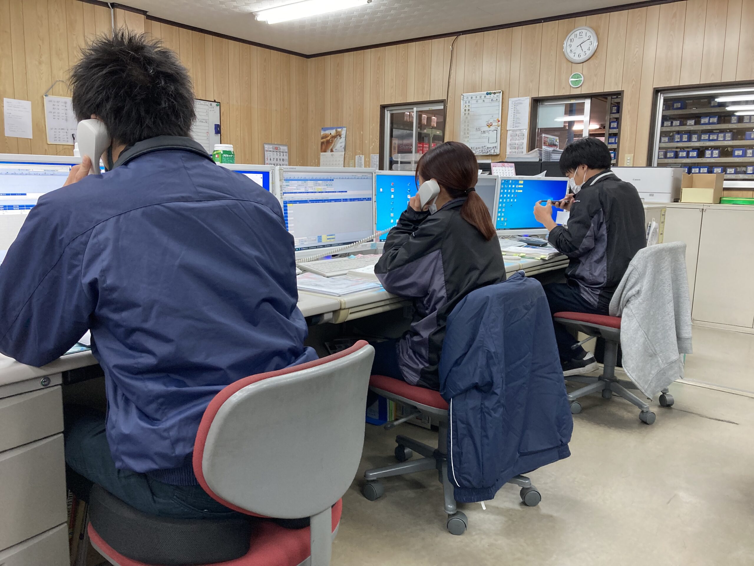 営業社員の同行、部品配達、店頭での電話応対